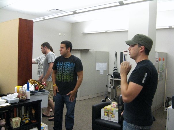 Today was the day we “cleaned up” our office to get it ready to be painted. We moved all our cubes and storage units to the center of the room. I’ll hopefull have a pic up soon.